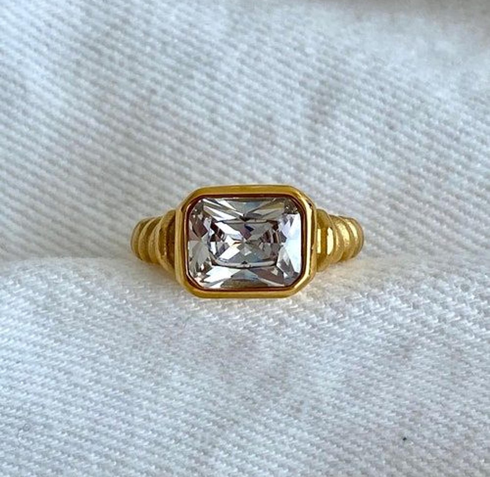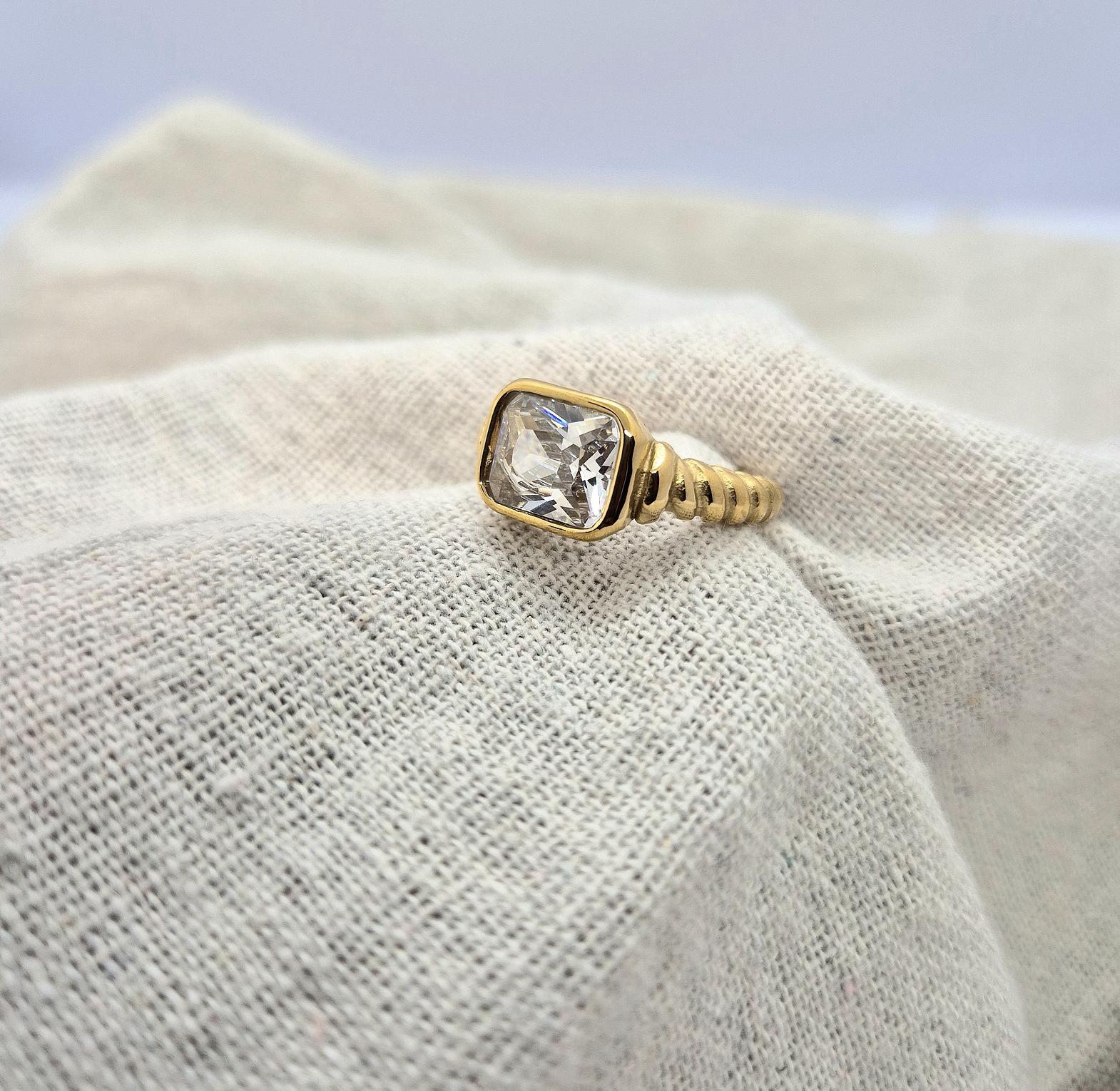 The Auric Twist Ring features a refined twisted design that symbolizes connection and flow. Its smooth, luminous finish makes it a versatile piece that pairs effortlessly with both minimal and layered styles. Ideal for daily wear with a sophisticated edge.