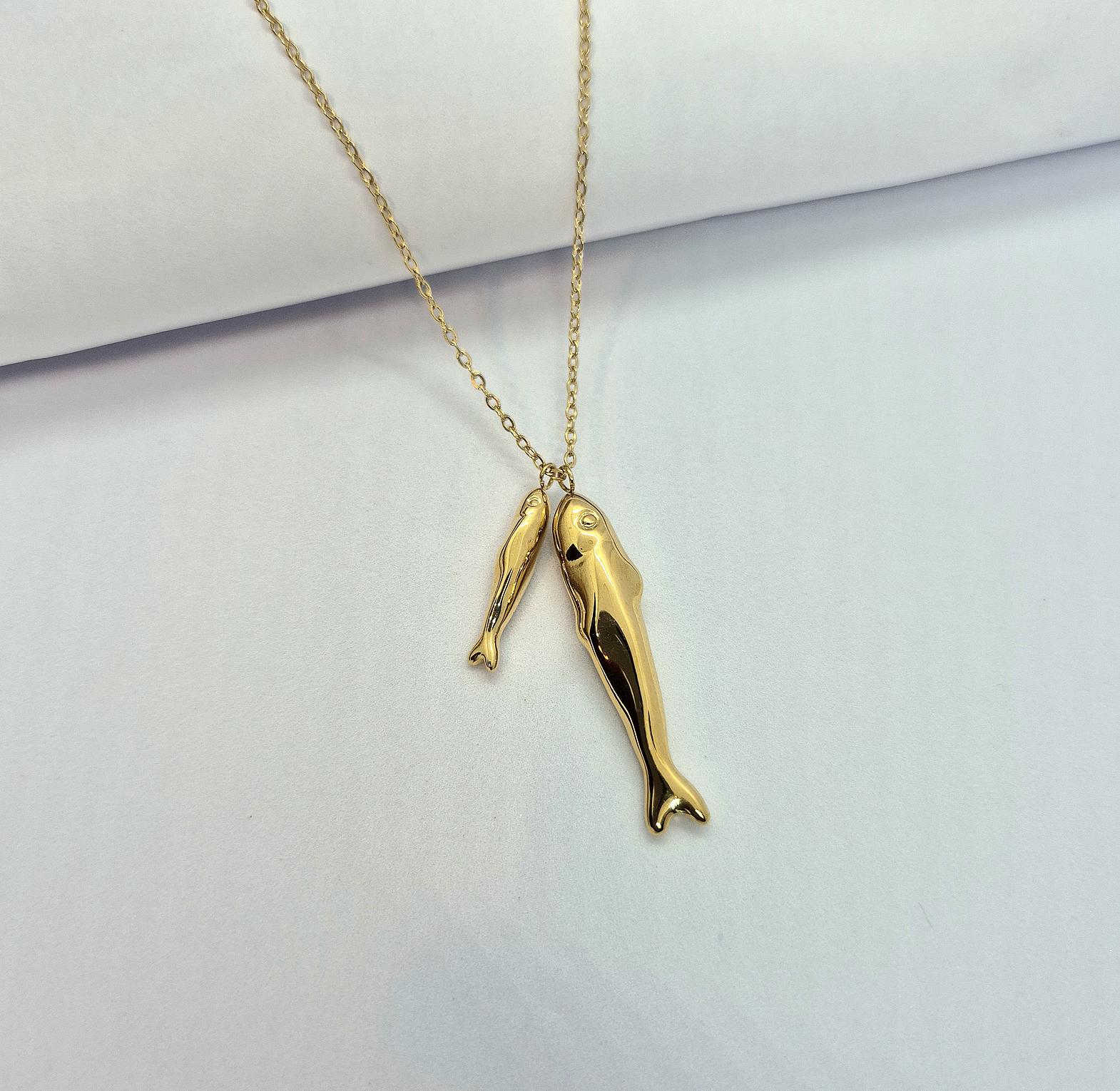 The Double Fish Necklace represents harmony and flow through its mirrored design. Elegant yet meaningful, it adds a unique touch to everyday jewelry styling.