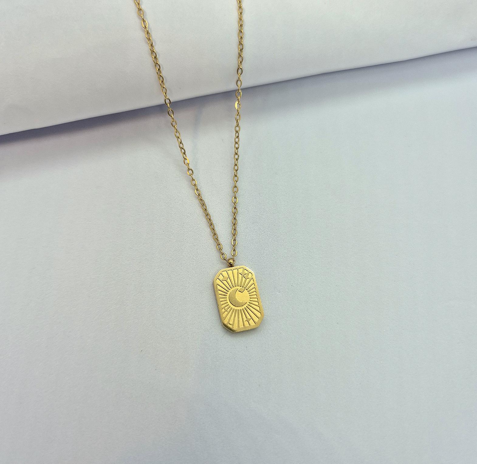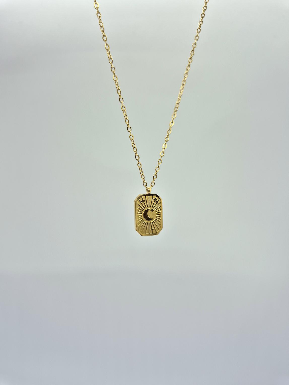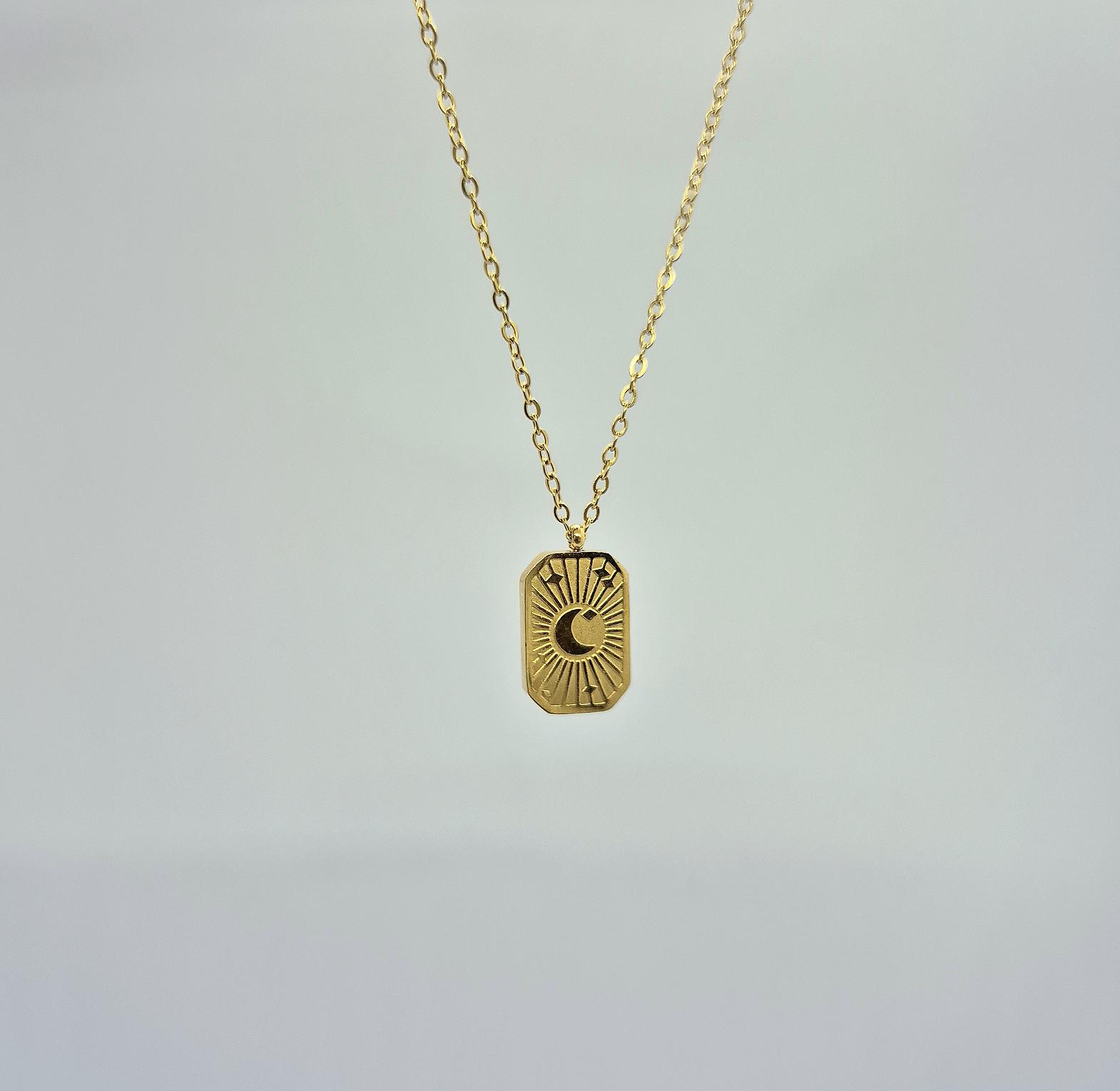 A bold moon-inspired necklace with radiant detail.