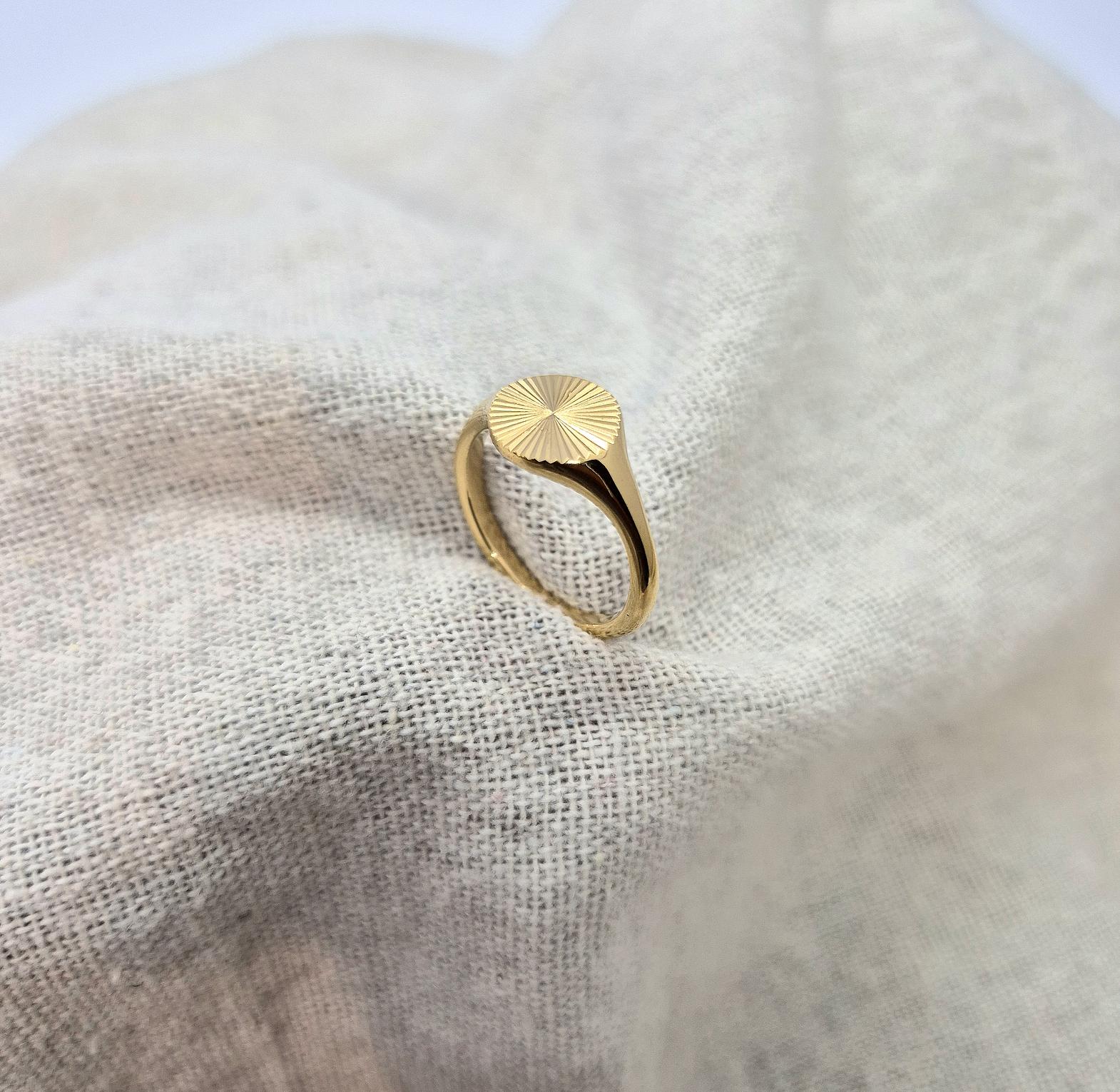 A bold signet ring inspired by the radiance of the sun.